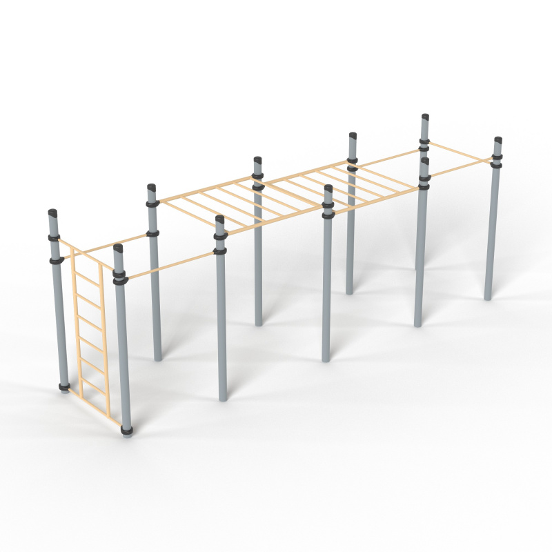 Спортивное оборудование - комплекс с двумя рукоходами входит в комплекс «Воркаут», наряду с другими спортивными элементами устанавливается на территориях игровых зон, зон отдыха, спортивных площадках для пользователей от 14 лет. Предназначено для доступных занятий физической культурой на свежем воздухе. Круглогодичное эксплуатирование.Изделие устанавливается на открытых уличных участках, находящихся под контролем ответственного лица – эксплуатанта. Установка должна проводится на ровной площадке, свободной от насаждений. Над зоной безопасности, должно быть свободное пространство, т.е над ней не должно быть ни веток, ни элементов других конструкций.