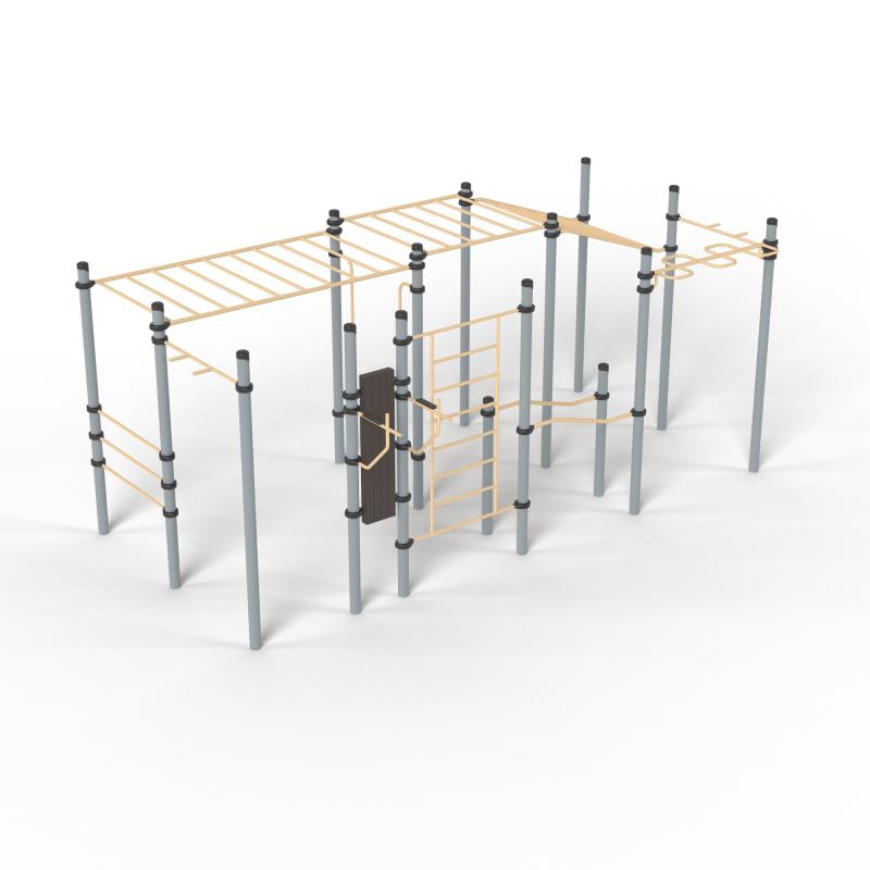 Воркаут-турник — комплексная система, объединяющая несколько элементов на разные группы мышц для базовых силовых стрит-тренировок с собственным весом. Прямые и наклонные рукоходы — для упражнений на укрепление верхней части тела. Змейка — дополнительного воздействия на пресс, руки и плечевой пояс, а также развития баланса и координации. Перекладины-турники — подтягиваний, переднего и обратного виса, растяжки и развития гибкости. Брусья с вертикальной стойкой — укрепления мышц пресса, спины, груди, бицепсов и трицепсов. Вертикальная лестница — выполнения комплекса гимнастических упражнений разных уровней сложности.