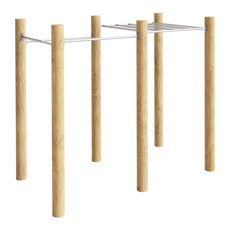 Опоры - дерево, покрытие - антисептик, масло террасное атмосферостойкое для древесины. Перекладины - металлопрокат сталь Ст3, покрытие - цинкосодержащий грунт, порошковая окраска (RAL по согласованию).