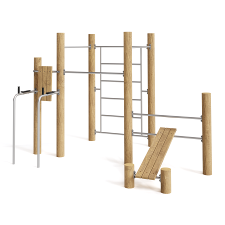 Опоры - дерево, покрытие - антисептик, масло террасное атмосферостойкое для древесины. Перекладины - сталь конструкционная, покрытие - цинкосодержащий грунт, окраска полимерным порошком.
