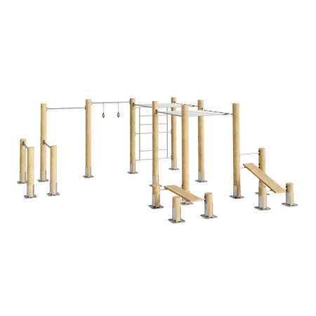 Опоры - дерево, покрытие - масло террасное атмосферостойкое для древесины. Перекладины - металлопрокат сталь Ст3, покрытие - цинкосодержащий грунт, порошковая окраска (RAL по согласованию).
