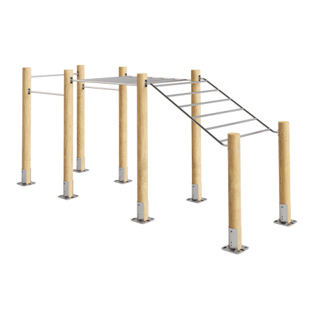 Опоры - дерево, покрытие - масло террасное атмосферостойкое для древесины. Перекладины - металлопрокат сталь Ст3, покрытие - цинкосодержащий грунт, порошковая окраска (RAL по согласованию).