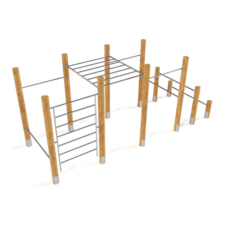 Опоры - дерево, покрытие - антисептик, масло террасное атмосферостойкое для древесины. Перекладины - сталь конструкционная, покрытие - цинкосодержащий грунт, окраска полимерным порошком.