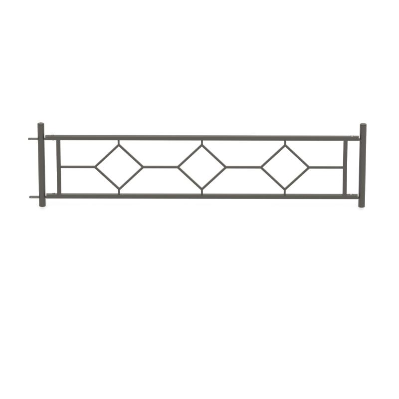 Ограждение металлическое красное с узором в виде трех квадратов для спортивной или детской площадки. Размеры секции 2000 х 500 мм