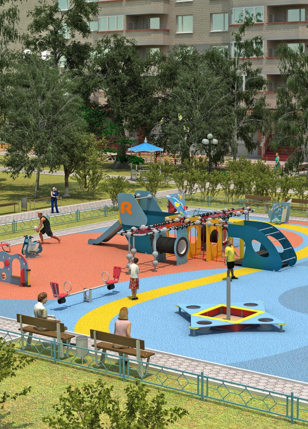 Наша уличная спортивная площадка включает в себя такие элементы, как баскетбольное кольцо, футбольные ворота, волейбольную сетку, а также несколько спортивных комплексов для различного уровня сложности. Детская площадка оснащена всем необходимым для весёлого досуга во дворе: качели, карусели, игровые комплексы, тематические формы. Все элементы специально подобраны таким образом, чтобы они соответствовали всем стандартам и максимально создавали атмосферу комфорта и безопасности.
